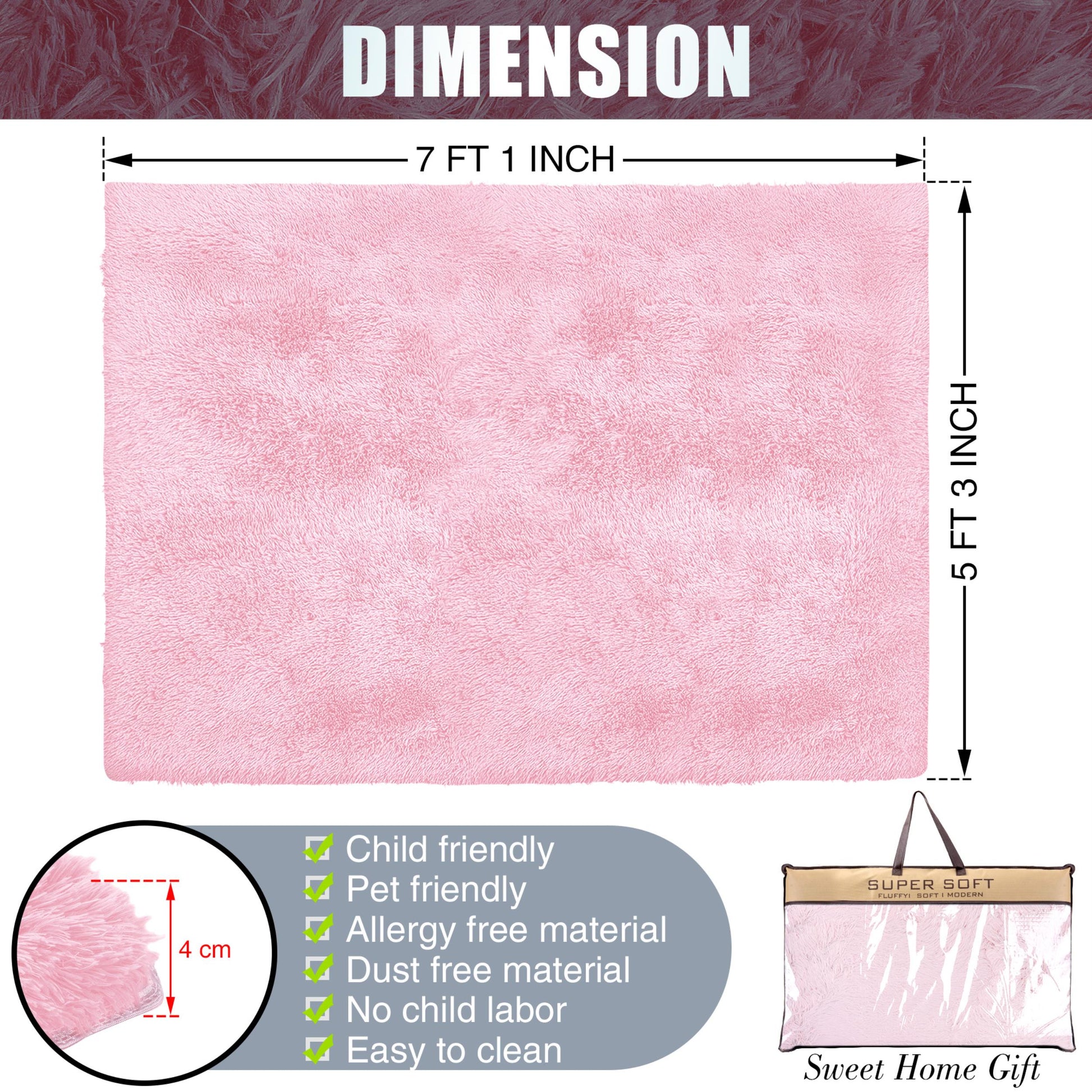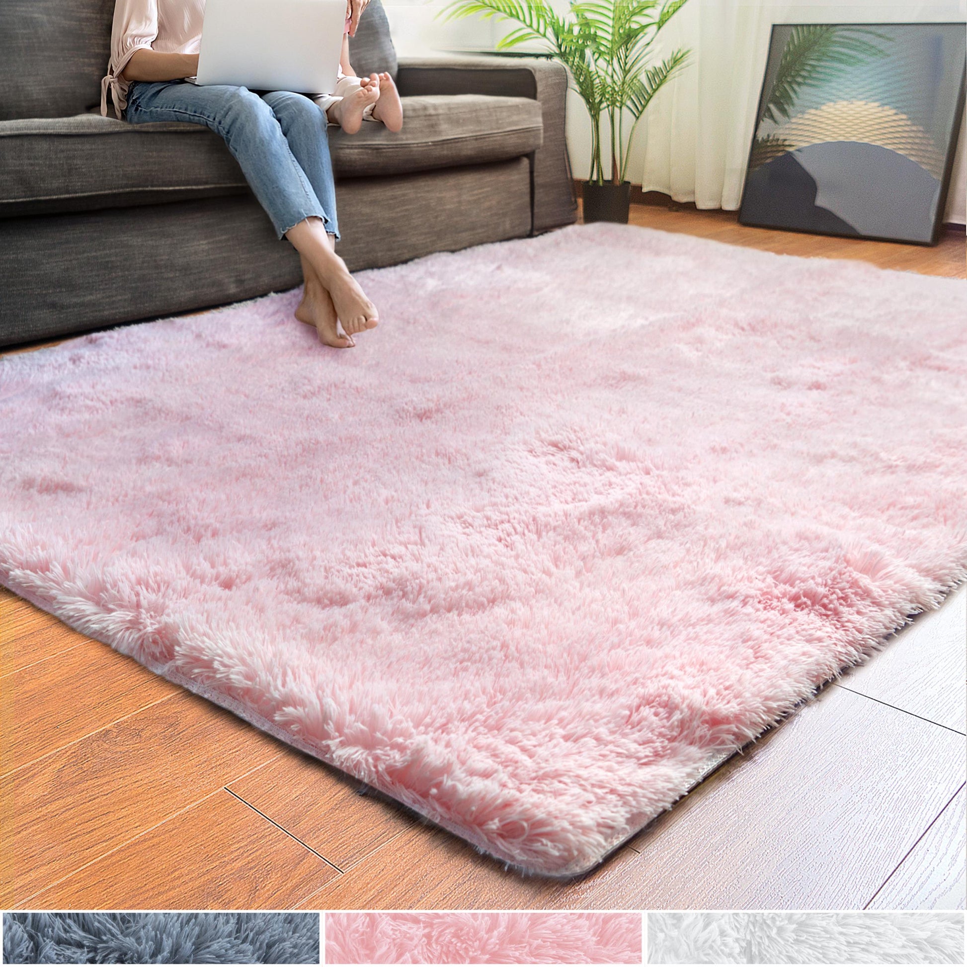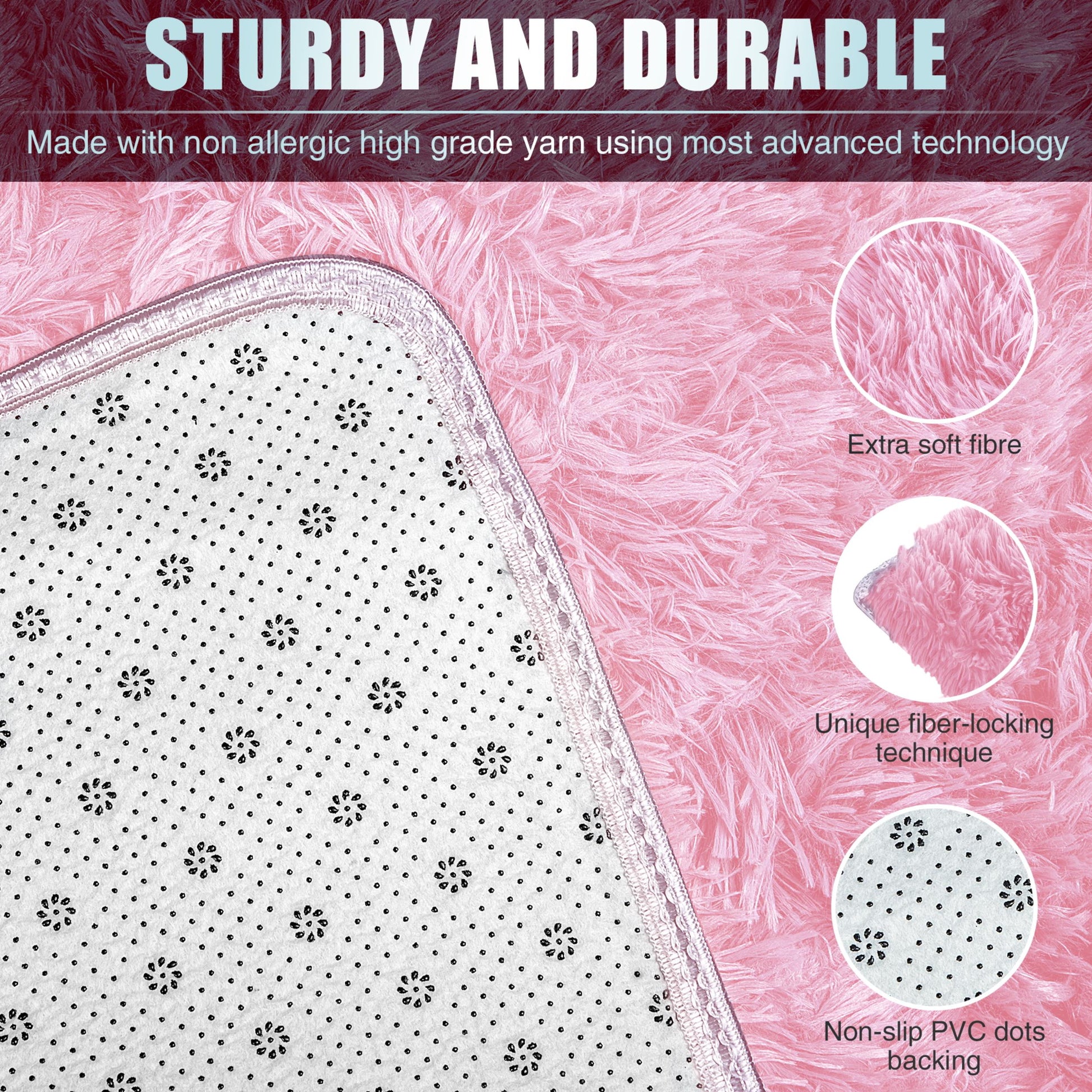 Tapis rose à poils longs en peluche super doux Details