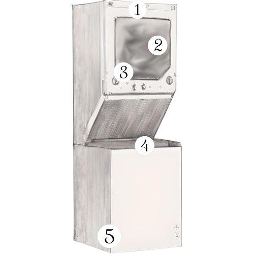 Positioned at the top of the front of the unit.