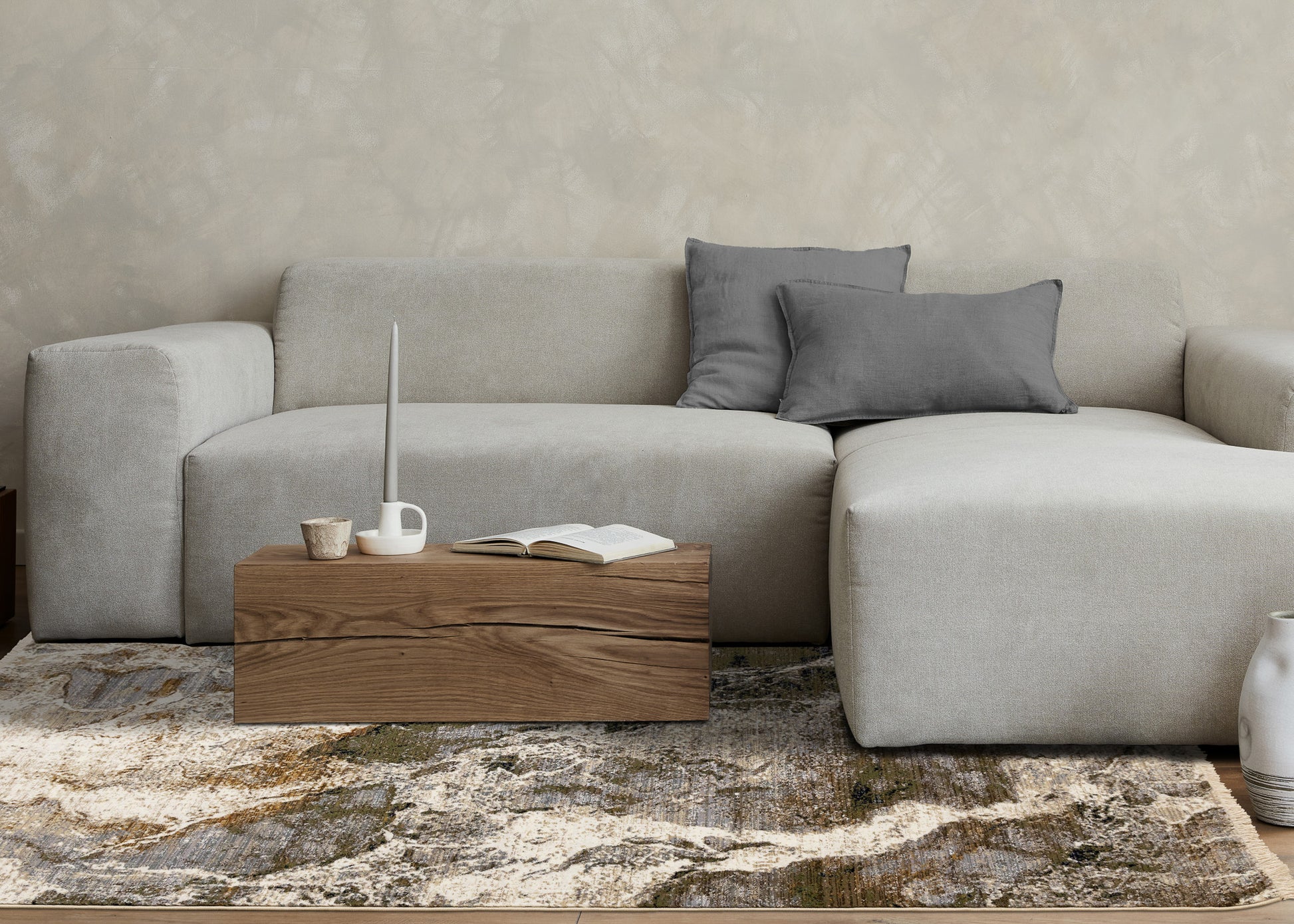 Contemporary Distressed Organic Cream Area Rug