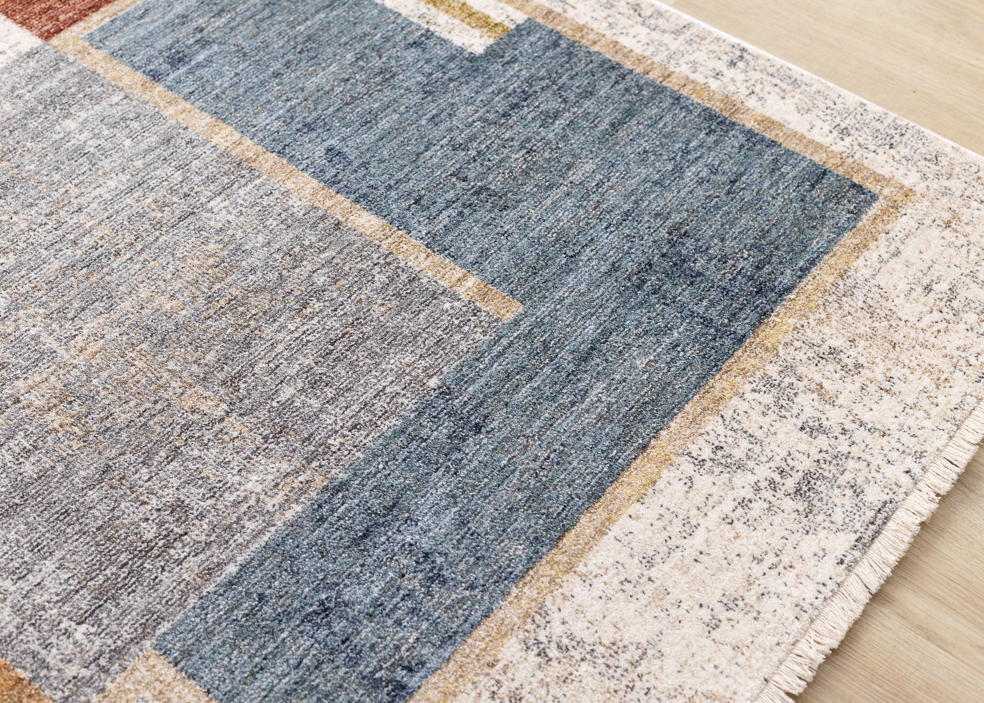 Contemporary Distressed Geometric White Area Rug Details